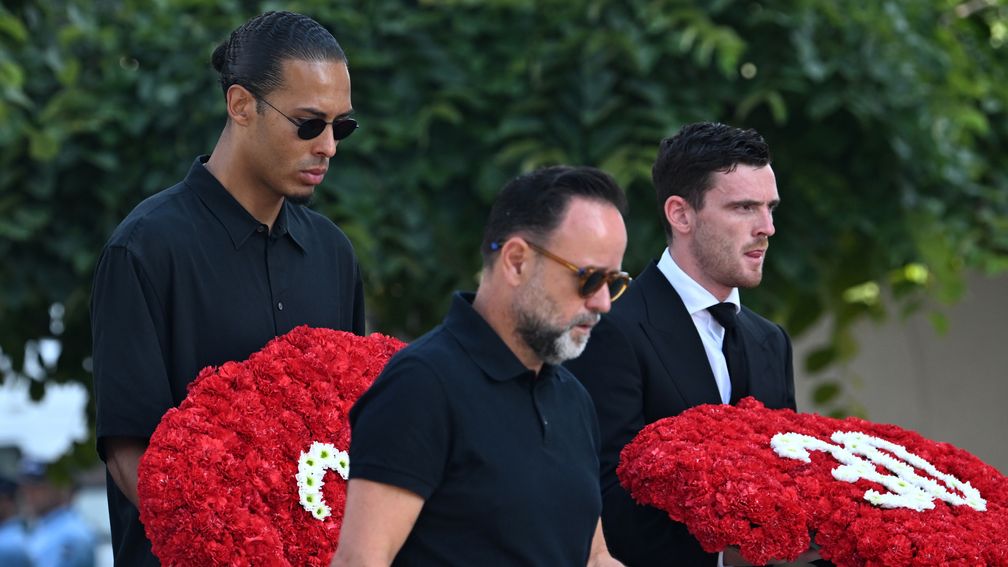 Liverpool-manager Arne Slot en aanvoerder Virgil van Dijk zijn vanochtend aanwezig zijn bij de uitvaart van Diogo Jota, de voetballer van de Engelse club die afgelopen donderdag samen met zijn jongere broer André Silva om het leven is gekomen bij een auto-ongeluk. Het Nederlandse duo is samen met huidige en voormalige ploeggenoten van de overleden spits, die 28 jaar is geworden, vrijdag al aangekomen in Portugal. De begrafenis vindt plaats in het kleine Noord-Portugese stadje Gondomar, waar Jota is opgegroeid. Naar veerboot in Spanje De dood van Jota op 28-jarige leeftijd veroorzaakte een schokgolf in de voetbalwereld en daarbuiten en leidde tot vele reacties...