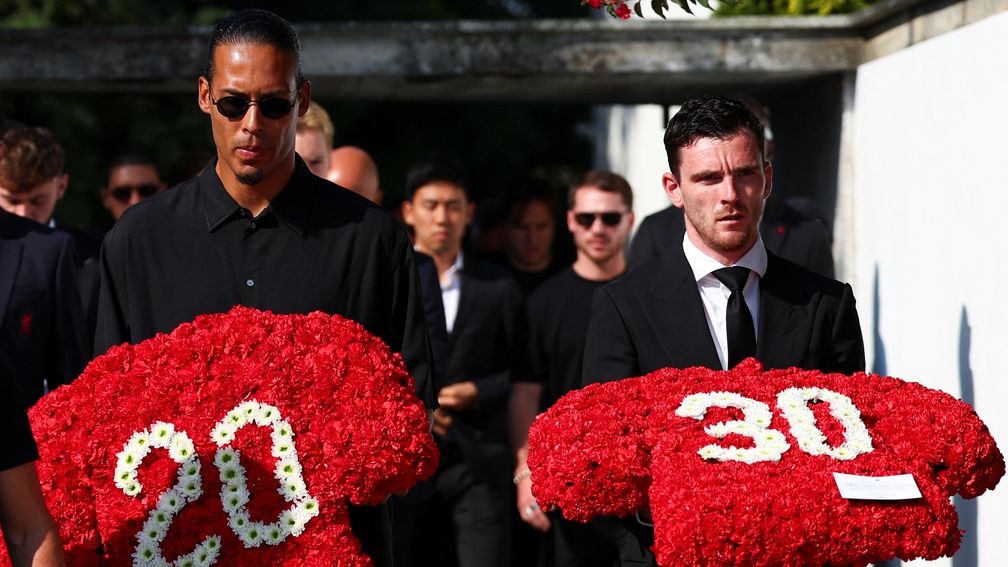 Liverpool-trainer Arne Slot en aanvoerder Virgil van Dijk zijn vanochtend aanwezig bij de uitvaart van Diogo Jota, de voetballer van de Engelse club die afgelopen donderdag samen met zijn jongere broer André Silva om het leven is gekomen bij een auto-ongeluk. Het Nederlandse duo is samen met huidige en voormalige ploeggenoten van de overleden spits, die 28 jaar is geworden, vrijdag al aangekomen in Portugal. De begrafenis vindt plaats in het kleine Noord-Portugese stadje Gondomar, waar Jota is opgegroeid. Naar veerboot in Spanje De dood van Jota op 28-jarige leeftijd veroorzaakte een schokgolf in de voetbalwereld en daarbuiten en leidde tot vele reacties en...